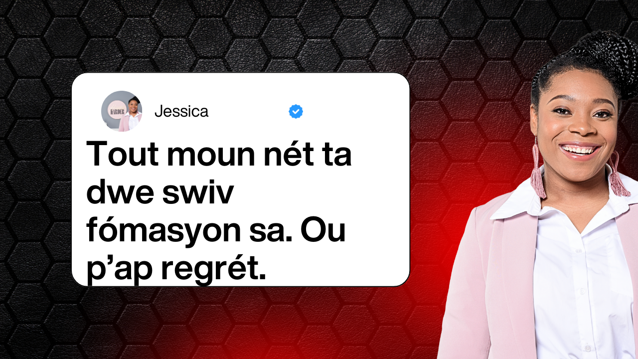 3 jou fòmasyon pou moun ki vle kraze laperèz, jwenn klète, epi kòmanse oswa grandi yon biznis ak konfyans — menm si anglè pa lang prensipal yo.